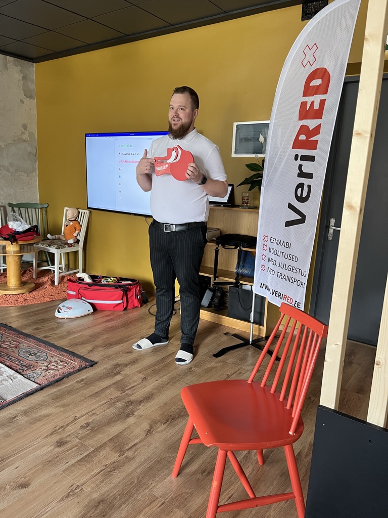 Tervishoiutöötaja kes on läbinud esmaabiõpetaja koolituse.